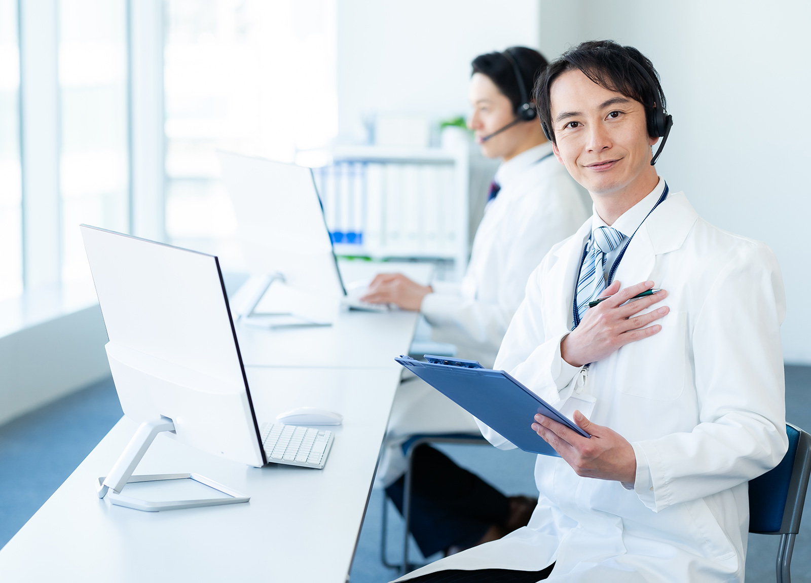 Googleチャットやオンライン面談を活用。場所を選ばず、必要な時にすぐ専門医に相談可能。スピード感ある対応を約束します。
